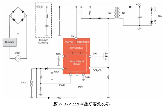 消費(fèi)者用LED節(jié)能燈取代白熾燈等傳統(tǒng)照明解決方案的同時(shí),也希望得到同樣或更好的照明體驗(yàn)。不幸的是,他們常常發(fā)現(xiàn)LED燈在調(diào)光能力上有問(wèn)題,因此覺(jué)得LED燈幾乎不能調(diào)光或調(diào)光時(shí)會(huì)閃爍。很多LED燈與家中已安裝的壁式調(diào)光器也不兼容。Marvell最新的88EM8183深度調(diào)光單級(jí)交流/直流LED驅(qū)動(dòng)器IC為OEM廠商和ODM廠商提供了兼容性最廣泛的調(diào)光解決方案,該IC與全球市場(chǎng)上絕大多數(shù)調(diào)光器都兼容,而且提供卓越的光輸出質(zhì)量,可提高消費(fèi)者的滿意度,減少退貨。