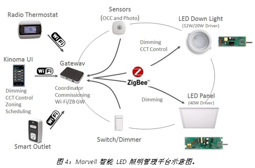 Marvell智能 LED照明管理平臺(tái)提供了完全集成的LED照明和無(wú)線控制系統(tǒng),因此不論是易用性的提升還是安裝成本的降低都趨向于極致,大大簡(jiǎn)化了使用和維護(hù)難度,使得非專(zhuān)業(yè)人員也能輕松應(yīng)對(duì)。該平臺(tái)的一大特色是允許終端用戶(hù)可以使用智能手機(jī)和平板電腦方案,使他們可以方便地從任何地方管理、分析并維護(hù)一個(gè)更具性?xún)r(jià)比的數(shù)字照明方案。