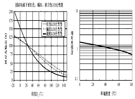 圖5 LED 發(fā)光性能與結(jié)溫、環(huán)境溫度的關(guān)系