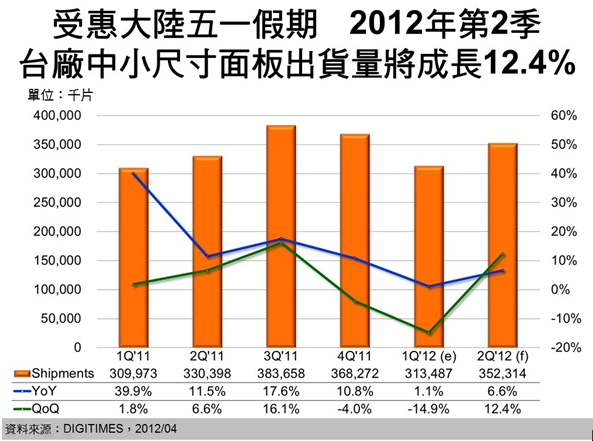 - 2012年第2季臺廠中小尺寸面板各應用別出貨量皆將成長
