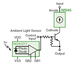 NSI45的另一個(gè)典型應(yīng)用是用作顯示屏和廣告牌文字電路的恒流穩(wěn)流器線性LED驅(qū)動(dòng)器。其特點(diǎn)包括低啟動(dòng)電壓,無(wú)論正向電壓(Vf)如何變化都可以實(shí)現(xiàn)精密穩(wěn)流,具有負(fù)溫度系數(shù)特性,可以保護(hù)LED。