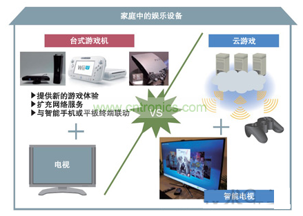 游戲機除了提供新的游戲體驗之外,還打算通過擴充網(wǎng)絡服務并進一步與智能手機及平板終端聯(lián)動,來增加用戶使用的機會。而智能電視則支持云計算型游戲發(fā)送服務,開始具有游戲機功能。