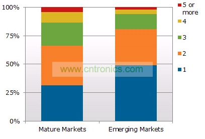 該報(bào)告還發(fā)現(xiàn),在成熟市場(chǎng)家庭平均擁有2.4臺(tái)電視,而在新興市場(chǎng)平均每戶為1.8臺(tái)。成熟市場(chǎng)中,超過(guò)三分之二的家庭有一臺(tái)以上電視,但在新興市場(chǎng)近一半的家庭只有一臺(tái)電視。鑒于平板電視持續(xù)推出新機(jī)種、價(jià)格益加實(shí)惠、以及消費(fèi)者對(duì)高品質(zhì)、大屏幕和高清晰度電視的消費(fèi)欲望,和成熟市場(chǎng)的消費(fèi)者一樣,越來(lái)越多的新興市場(chǎng)消費(fèi)者購(gòu)買平板電視(主要是液晶電視)來(lái)汰換他們現(xiàn)有的舊款式電視。