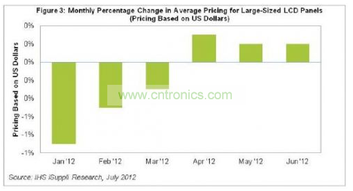 幫助推動(dòng)6月價(jià)格上漲的突出因素包括廠商通過壓低產(chǎn)能利用率來嚴(yán)格控制產(chǎn)量,以及生產(chǎn)結(jié)構(gòu)發(fā)生變化,導(dǎo)致部分面板型號(hào)出現(xiàn)供應(yīng)緊張。雖然終端需求仍因美國(guó)經(jīng)濟(jì)黯淡、歐元區(qū)債務(wù)危機(jī)和新興市場(chǎng)增長(zhǎng)放緩的影響而保持疲軟,但隨著新的超級(jí)本的推出以及消費(fèi)者為收看倫敦奧運(yùn)會(huì)而購(gòu)買新電視,預(yù)計(jì)今年下半年需求將改善。