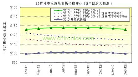 圖2:32英寸電視液晶面板價(jià)格變化(8月以后為預(yù)測(cè))