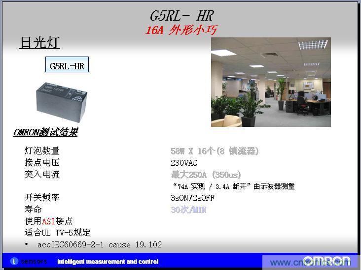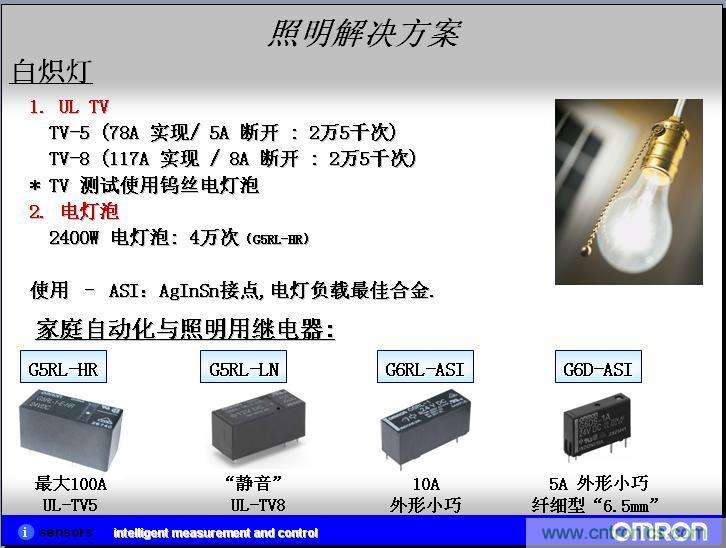 我們實(shí)際客戶應(yīng)用的案例,我們?cè)谕茝V客戶的過程中,形成了一些實(shí)際的應(yīng)用案例,在實(shí)現(xiàn)照明系統(tǒng)和家電自動(dòng)化的領(lǐng)域,在節(jié)能領(lǐng)域、自動(dòng)化的領(lǐng)域現(xiàn)在是越來越高了,目前歐姆龍的繼電器在日光燈這塊直接的應(yīng)用可以運(yùn)用繼電器作為啟用的電阻。繼電器也就是高級(jí)一點(diǎn)的器開關(guān)。在模塊上面,也是用來控制鎮(zhèn)流器的。在另外一個(gè)人體、物體探照這塊,我們也會(huì)有MEMS非接觸系統(tǒng)的微溫度傳感器。按照設(shè)計(jì)的過程中,就是在信號(hào)繼電器和MEMS非接觸溫度傳感器繼電器上都有應(yīng)用,但是還沒有成功案例,所以上面就打了問號(hào)。