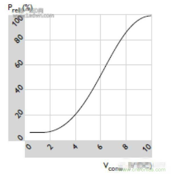 1-10V調(diào)光曲線(xiàn)如下圖: