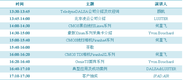 秉承客戶至上,以市場需求為導向,感謝一路上有新老客戶的陪伴支持與理解,才使得凌云公司在前進的道路上有足夠的動力與方向,看到了美好的視覺給人們帶來的豐富多彩的生活。此次答謝會得到了Teledyne DALSA的高度重視與支持,屆時,DALSA亞太區(qū)OEM技術(shù)總監(jiān)Yvon Bouchard、 DALSA線掃描產(chǎn)品資深產(chǎn)品經(jīng)理何星飛等大咖將會帶來國際前沿的技術(shù)與產(chǎn)品資訊: