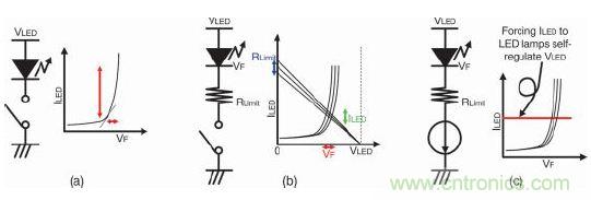 圖 1.對比三種LED驅(qū)動電路