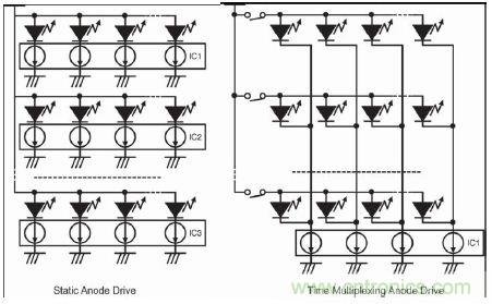 圖 8.靜態(tài)陽極驅(qū)動器與時分復用陽極驅(qū)動器