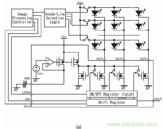 從圖2可以看出,LED燈的陰極采用當前市場常見的LED驅(qū)動器IC驅(qū)動。這里要討論LED燈的陽極驅(qū)動器電路。陰極采用恒流驅(qū)動器有優(yōu)勢,陽極希望也只提供足夠的電壓。但仍需做出如何驅(qū)動陽極的重要決定!
