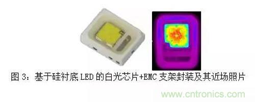 (3)垂直結(jié)構(gòu)的芯片,不僅可以采用陶瓷封裝工藝,也可以采用更為廉價(jià)的支架封裝方式,進(jìn)一步降低客戶的使用成本,如圖3所示,這為高品質(zhì)照明提供了無(wú)限的可能。利用硅襯底LED芯片,可實(shí)現(xiàn)照明品質(zhì)更佳、系統(tǒng)成本更低、設(shè)計(jì)方案更靈活、更具創(chuàng)新性的LED照明解決方案。