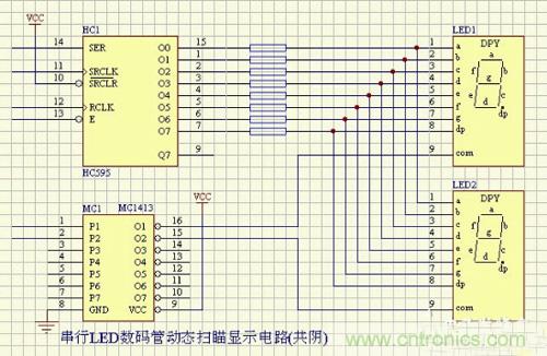 串行LED數(shù)碼管動態(tài)掃描顯示電路(共陰)