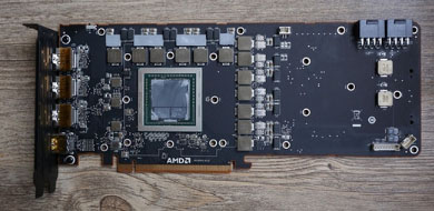 HBM顯存不同于GDDR5,它可以和GPU一起封裝, 二者借助硅中介層物理互連 ,后者則是“眾星拱月”式地分散排列。
