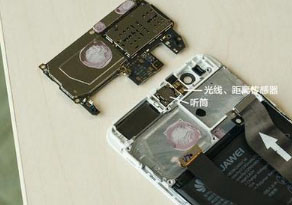 聽筒、光線傳感器采用金屬觸點(diǎn)與主板進(jìn)行連接,同樣有類似膠水的東西進(jìn)行固定。