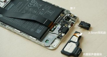 P10的下半部分,我們發(fā)現(xiàn)揚(yáng)聲器模塊、3.5mm耳機(jī)座均采用FPC與副板連接,而市面上不少機(jī)型在這部分均采用了金屬觸點(diǎn)這種活連接方式。在性能上兩者的差異不會(huì)太大,但FPC這種方式成本會(huì)更加高。