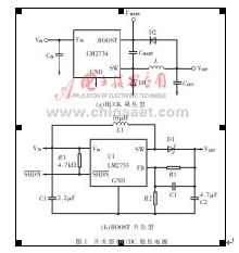 圖1為二款不同功能的開關型DC/DC轉換電路。它們具有轉換效率高、重量輕,既可以升壓,又可以降壓,輸出功率大等特點。由于其轉換效率高,電路中元器件的發(fā)熱量相對較小。由于電路處于較高頻率的開關工作狀態(tài),只需采用小容量、小體積的濾波電容即可見效。對輸入源電壓波動的容裕范圍比較寬。