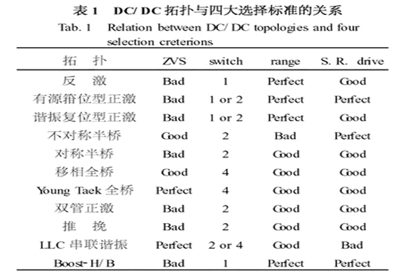 低電壓輸出,所以需要采用同步整流技術(shù)。 變化范圍非常寬。 查看表2 ,發(fā)現(xiàn)反激、有源箝位型正激、諧振復(fù)位型正激、對(duì)稱(chēng)半橋、雙管正激、推挽式變換器、Boost-H/B是合適的候選拓?fù)洹?因?yàn)槭堑蛪狠斎霙](méi)有ZVS 的限制,拓?fù)涞倪x用就自由很多。 從現(xiàn)有的產(chǎn)品來(lái)看以上的幾種DC/DC 拓?fù)涠加胁捎谩?由表1可知,最適用的拓?fù)涫怯性大槲恍驼?、諧振復(fù)位型正激、Boost-H/B。