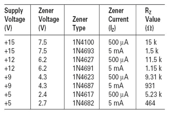 表2:電路圖3和4的一些齊納二極管與Rz電阻值的關(guān)系