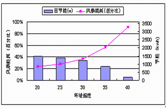 從圖3可看出,隨著環(huán)境溫度的降低,換熱單元的耗能隨至減少。當環(huán)境溫度為20度時,換熱單元耗能只是滿負荷功耗的25%,日可節(jié)約電能約1.5度。