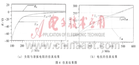 從圖4(a)的仿真結(jié)果可以看出,在200MHz附近,RIN+RL<0,所以滿足起振條件,由于RIN的負(fù)阻比較大,所以提供交流能量的能力比較強(qiáng),故振蕩的幅度會比較大,這一點在后面的仿真和測試中可以得到證實。從圖4(b)可以看出,當(dāng)f為200MHz左右時,XIN+XL=0,從而滿足相位平衡條件,它決定了振蕩的頻率。