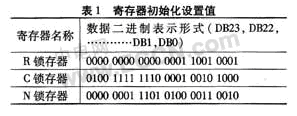 主分頻比N=1.5 GHz/200 kHz=7 500 。需要注意的是:雙模前置分頻器(P/P+1)輸出頻率要求小于300 MHz。因此選擇P/P+1=16/17,根據(jù)N=BF+A(A、B為整數(shù)),得到A=12,B=468。3個24位鎖存器的初始化設置如表1所示。