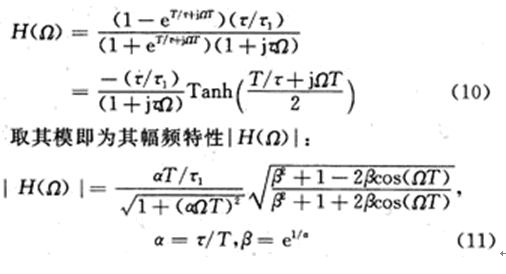 上式說明,Ie(Ω)是輸入電流頻譜I(Ω)周期延拓的組合,周期為Ω0=2π/T。各電流分量流過RC并聯(lián)支路時的電壓為相應電流分量與RC支路阻抗(R/(1+jωτ),ω=Ω±(2n+1)π/T)的乘積,于是輸出電壓頻譜U(Ω)為:
