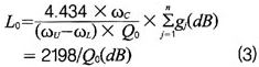 將前面的濾波器歸一化低通元件值代入公式(6)和(7):