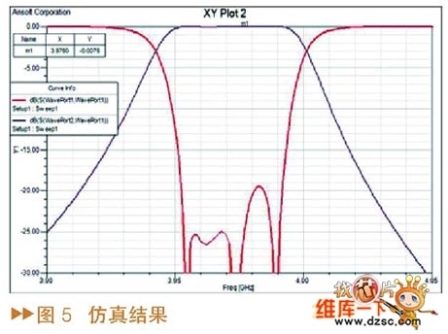 在本文中首先忽略DC-SIR的空腔對(duì)諧振桿結(jié)構(gòu)的影響,通過(guò)計(jì)算得其基本結(jié)構(gòu)參數(shù),再使用Ansoft HFSS場(chǎng)仿真軟件對(duì)空腔的尺寸及諧振桿低阻抗部分的長(zhǎng)度進(jìn)行優(yōu)化,并對(duì)濾波器的外部品質(zhì)因素Qe、級(jí)間耦合系數(shù)和諧振頻率等進(jìn)行單獨(dú)仿真,最后整體仿真,確定濾波器的最終尺寸。測(cè)試結(jié)果表明,實(shí)際濾波器指標(biāo)與仿真結(jié)果基本一致,說(shuō)明了該方法設(shè)計(jì)濾波器的可行性。