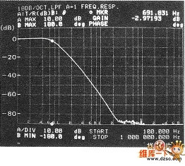 圖4是同一常數(shù)構(gòu)成的LPF的衰減特性,它是-18dB/oct、fc=690Hz的特性,對(duì)于截?cái)囝l率fc,約下降69%(0.69fc),將此取為1kHz時(shí),電阻R應(yīng)設(shè)置為:R=0.69×15.92×103≈11k(Ω)