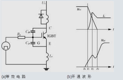 圖1 IGBT開(kāi)關(guān)等效電路和開(kāi)通波形