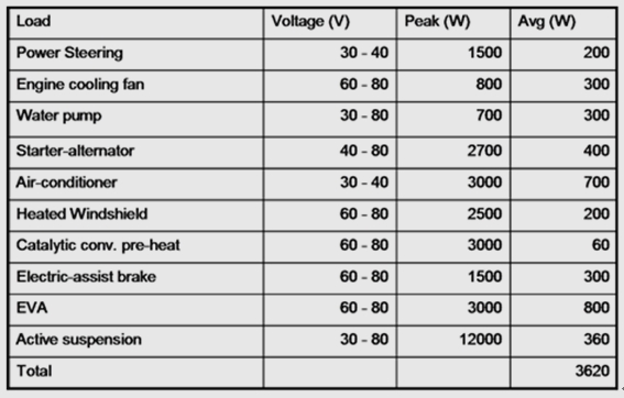 圖1. 各種汽車應(yīng)用及其相關(guān)電壓和功率范圍的幾個實例