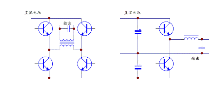 3KVA 以上功率的在線式UPS 幾乎全部采用IGBT 作為逆變部分的功率器件,常用全橋式電路和半橋電路,如下圖4。