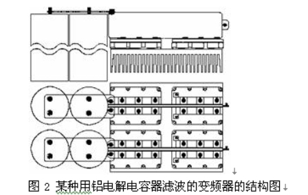 從上述兩電容器的參數(shù)可以明顯看到:與鋁電解電容器相比,ESR、最大有效值電流、寄生電感、浪涌電壓/額定電壓的比值、浪涌電流均明顯優(yōu)于鋁電解電容器,還有一個(gè)重要因素就是薄膜電容器的壽命是鋁電解電容器所無(wú)法相比的。如某種用鋁電解電容器濾波的變頻器的結(jié)構(gòu)如圖2。