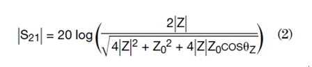 然后,利用ABCD參數(shù)和散射(S)參數(shù)之間的關系,可以得到插入損耗S21的幅度為: