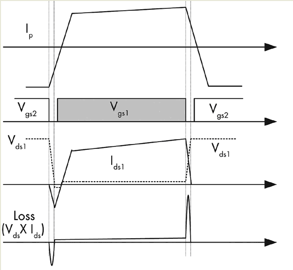 圖2. 不對稱半橋轉(zhuǎn)換器的詳細(xì)開關(guān)波形