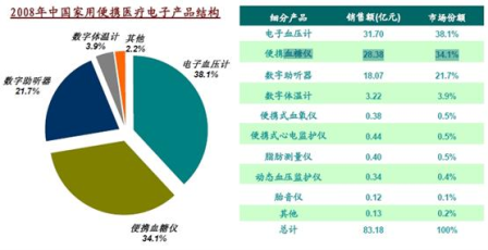 圖2 2008年中國便攜式醫(yī)療電子產(chǎn)品市場結(jié)構(gòu)