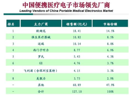 圖6 中國便攜式醫(yī)療電子產(chǎn)品市場領(lǐng)先廠商
