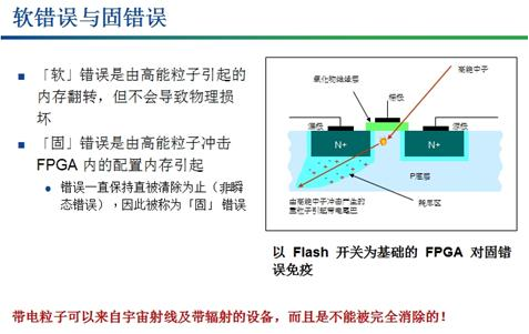 他指出對于Flash工藝器件來說,它對固錯誤有免疫性,因為Flash晶體管不會隨意翻轉(zhuǎn),雖然有瞬態(tài)翻轉(zhuǎn),但瞬態(tài)過了以后會恢復(fù)生產(chǎn)。