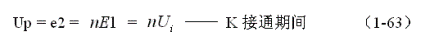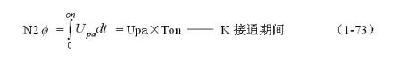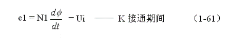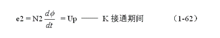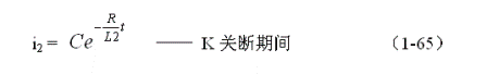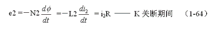 式中負(fù)號(hào)表示反電動(dòng)勢(shì)e2的極性與(1-62)式中的符號(hào)相反,即:K接通與關(guān)斷時(shí)變壓器次級(jí)線圈產(chǎn)生的感應(yīng)電動(dòng)勢(shì)的極性正好相反。對(duì)(1-64)式階微分方程求解得: