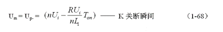 這里還需提請(qǐng)注意,在決定反激式開關(guān)電源輸出電壓的(1-78)式中,并沒有使用反激輸出電壓最大值或峰值Up-的概念,而式使用的Up正好是正擊式輸出電壓的峰值,這是因?yàn)榉醇ぽ敵鲭妷旱淖畲笾祷蚍逯礥p-計(jì)算比較復(fù)雜((1-68)式),并且峰值Up-的幅度不穩(wěn)定,它會(huì)隨著輸出負(fù)載大小的變化而變化;而正擊式輸出電壓的峰值Up則不會(huì)隨著輸出負(fù)載大小的變化而變化。