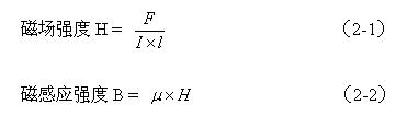 (2-1)式中磁場強度H的單位為奧斯特(Oe),力F的單位為牛頓(N),電流I的單位為安培(A),導線長度的單位為米(m)。(2-2)式中,磁感應強度B的單位為特斯拉(T), 為導磁率,單位為亨/米(H/m),在真空中的導磁率記為 , = 1。由于特斯拉的單位太大,人們經(jīng)常使用高斯(Gs)作為磁感應強度B的單位。1特斯拉等于10000高(1T=104Gs)。