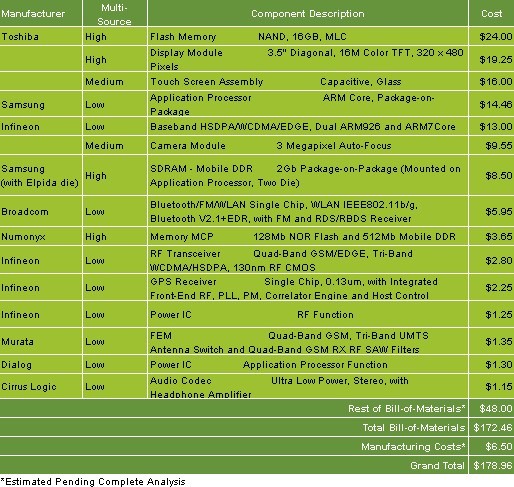 - iSuppli拆機(jī)分析iPhone 3G S的材料及制造成本為178.96美元