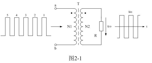 為了簡單起見,我們把單激式變壓器開關(guān)電源等效成如圖2-1所示電路,其中我們把直流輸入電壓通過控制開關(guān)通、斷的作用,看成是一序列直流脈沖電壓,即單極性脈沖電壓,直接給開關(guān)變壓器供電。這里我們特別把變壓器稱為開關(guān)變壓器,以表示圖2-1所示電路與一般電源變壓器電路在工作原理方面還有區(qū)別的。