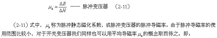 幾乎可以看成是一個(gè)常數(shù);而開關(guān)變壓器輸入脈沖電壓的幅度以及寬度都不是固定的,其磁滯回線的面積相對(duì)來說變化比較大,鐵芯導(dǎo)磁率的變化范圍也很大,特別是雙激式開關(guān)變壓器,因此,只能用平均導(dǎo)磁率