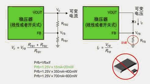 一般來(lái)說(shuō),DC/DC穩(wěn)壓器對(duì)VFB的變化有一個(gè)感知的范圍,一旦LED選定,其工作電流IF的大小也就確定了,所選的電阻要保證VFB落在DC/DC穩(wěn)壓器容許的范圍內(nèi)。