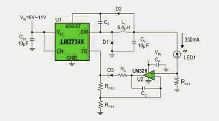 圖3:基于LM2734的恒流驅(qū)動(dòng)電路。