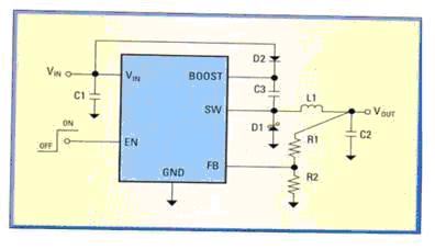 圖2:在FB反饋端和RFB之間放置一個(gè)運(yùn)算放大器以降低功耗。