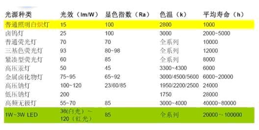 表1:大功率LED在壽命上具有很大優(yōu)勢(shì)。