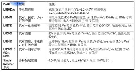 表2:美國(guó)國(guó)家半導(dǎo)體的LED驅(qū)動(dòng)器解決方案一覽表